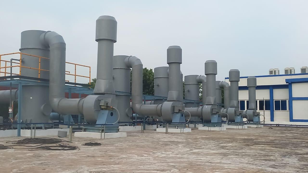 After treatment, the cleaned air exits through vertical stacks, ensuring proper dispersion and compliance with environmental norms. CRF Equipment Company has done such installations widely in chemical plants, pharmaceutical facilities, food processing units, metal finishing industries, and waste water treatment plants. The modular layout allows multiple process lines to operate simultaneously, providing redundancy and scalability. Overall, CRF Equipments Company plays a critical role in protecting worker health, reducing environmental impact, and meeting pollution control regulations.